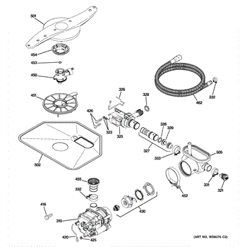 The Pump and Motor Assembly is an OEM replacement part for GE dishwashers. It works to circulate water throughout wash and rinse cycles. The motor spins the integrated pump impeller to draw fresh water into the dishwasher and drain used water. Causes of a bad pump and motor assembly can include mineral buildup on pump parts inhibiting water flow, worn motor windings reducing efficiency, or damage from freezing temperatures. Symptoms of a bad pump and motor assembly include:
