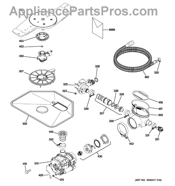 The Pump and Motor Assembly is an OEM replacement part for GE dishwashers. It works to circulate water throughout wash and rinse cycles. The motor spins the integrated pump impeller to draw fresh water into the dishwasher and drain used water. Causes of a bad pump and motor assembly can include mineral buildup on pump parts inhibiting water flow, worn motor windings reducing efficiency, or damage from freezing temperatures. Symptoms of a bad pump and motor assembly include: