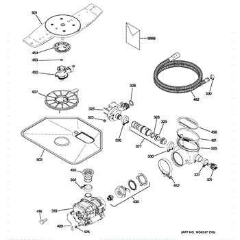 The Pump and Motor Assembly is an OEM replacement part for GE dishwashers. It works to circulate water throughout wash and rinse cycles. The motor spins the integrated pump impeller to draw fresh water into the dishwasher and drain used water. Causes of a bad pump and motor assembly can include mineral buildup on pump parts inhibiting water flow, worn motor windings reducing efficiency, or damage from freezing temperatures. Symptoms of a bad pump and motor assembly include: