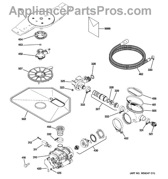Parts for Ge PDWT500V00BB: 05 - Motor-Pump Mechanism Parts