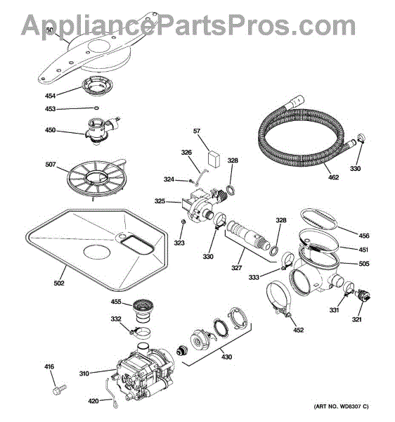 The Pump and Motor Assembly is an OEM replacement part for GE dishwashers. It works to circulate water throughout wash and rinse cycles. The motor spins the integrated pump impeller to draw fresh water into the dishwasher and drain used water. Causes of a bad pump and motor assembly can include mineral buildup on pump parts inhibiting water flow, worn motor windings reducing efficiency, or damage from freezing temperatures. Symptoms of a bad pump and motor assembly include:
