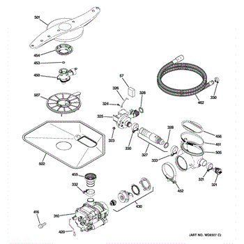 The Pump and Motor Assembly is an OEM replacement part for GE dishwashers. It works to circulate water throughout wash and rinse cycles. The motor spins the integrated pump impeller to draw fresh water into the dishwasher and drain used water. Causes of a bad pump and motor assembly can include mineral buildup on pump parts inhibiting water flow, worn motor windings reducing efficiency, or damage from freezing temperatures. Symptoms of a bad pump and motor assembly include: