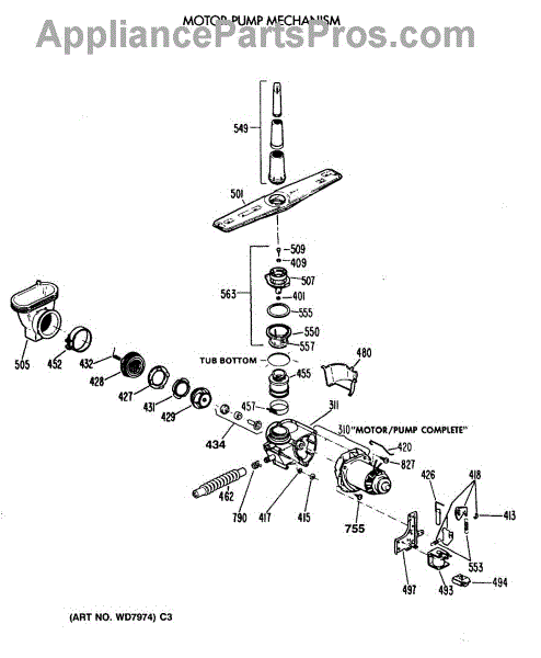 This kit is used to repair a leaking pump on GE made dishwashers. For a complete pump/motor assembly get WD26X10013.