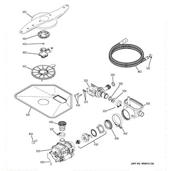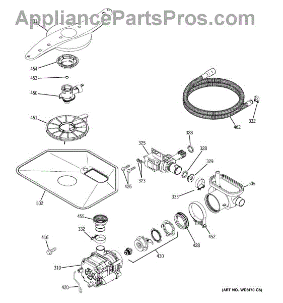 The Pump and Motor Assembly is an OEM replacement part for GE dishwashers. It works to circulate water throughout wash and rinse cycles. The motor spins the integrated pump impeller to draw fresh water into the dishwasher and drain used water. Causes of a bad pump and motor assembly can include mineral buildup on pump parts inhibiting water flow, worn motor windings reducing efficiency, or damage from freezing temperatures. Symptoms of a bad pump and motor assembly include: