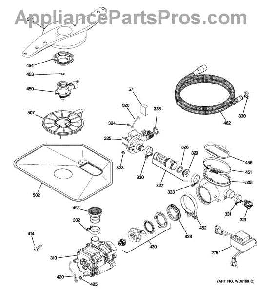 The Pump and Motor Assembly is an OEM replacement part for GE dishwashers. It works to circulate water throughout wash and rinse cycles. The motor spins the integrated pump impeller to draw fresh water into the dishwasher and drain used water. Causes of a bad pump and motor assembly can include mineral buildup on pump parts inhibiting water flow, worn motor windings reducing efficiency, or damage from freezing temperatures. Symptoms of a bad pump and motor assembly include: