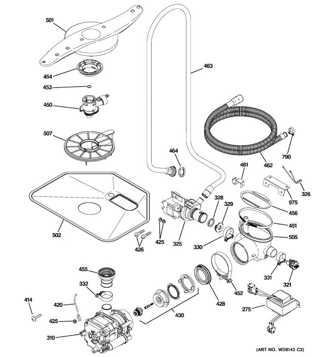 The Dishwasher Sump is an OEM part for GE dishwashers. This part is located at the bottom of the dishwasher and serves as a central hub where water is collected and recirculated during the wash and rinse cycles. The sump houses the dishwasher's pump and filter assembly.