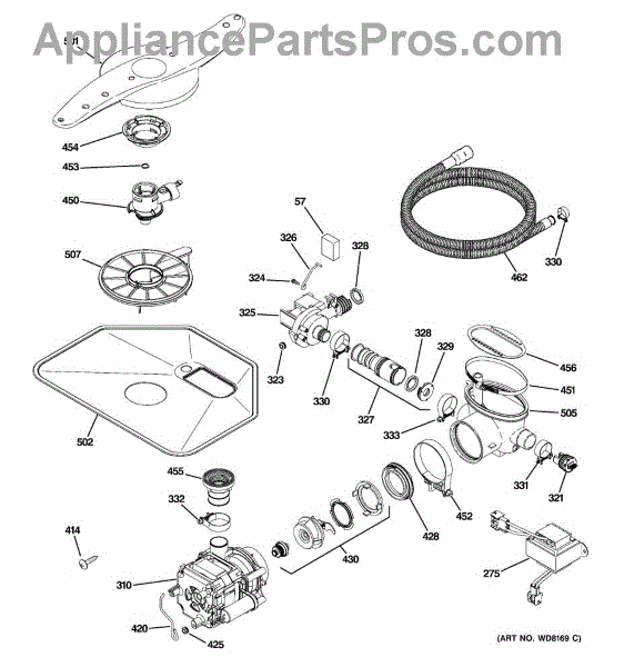 The Pump and Motor Assembly is an OEM replacement part for GE dishwashers. It works to circulate water throughout wash and rinse cycles. The motor spins the integrated pump impeller to draw fresh water into the dishwasher and drain used water. Causes of a bad pump and motor assembly can include mineral buildup on pump parts inhibiting water flow, worn motor windings reducing efficiency, or damage from freezing temperatures. Symptoms of a bad pump and motor assembly include: