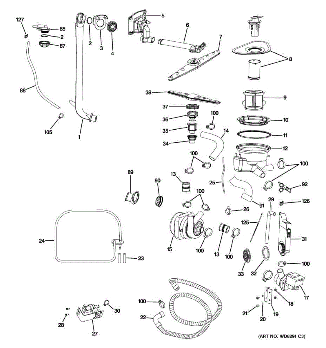 The Spray Arm Connector Assembly is an OEM replacement part for GE dishwashers. This assembly connects the upper and lower spray arms to the water inlet valve, allowing water to flow through the spray arms during the wash cycle.