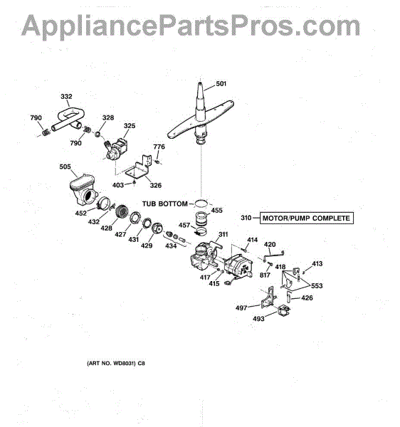 This kit is used to repair a leaking pump on GE made dishwashers. For a complete pump/motor assembly get WD26X10013.