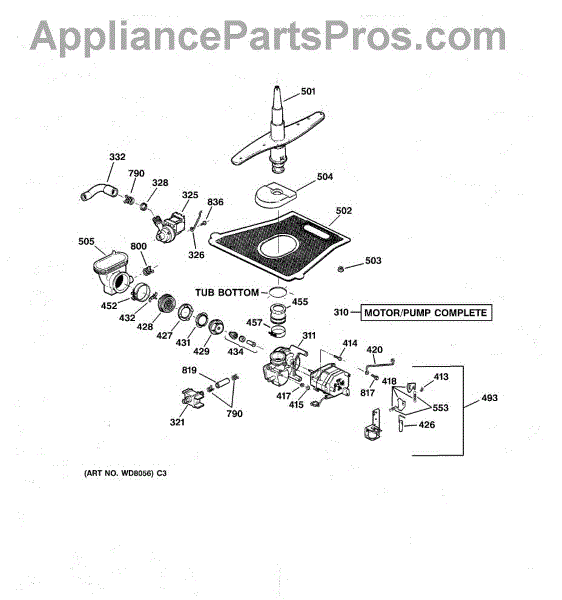 This kit is used to repair a leaking pump on GE made dishwashers. For a complete pump/motor assembly get WD26X10013.