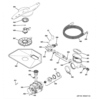 The Pump and Motor Assembly is an OEM replacement part for GE dishwashers. It works to circulate water throughout wash and rinse cycles. The motor spins the integrated pump impeller to draw fresh water into the dishwasher and drain used water. Causes of a bad pump and motor assembly can include mineral buildup on pump parts inhibiting water flow, worn motor windings reducing efficiency, or damage from freezing temperatures. Symptoms of a bad pump and motor assembly include: