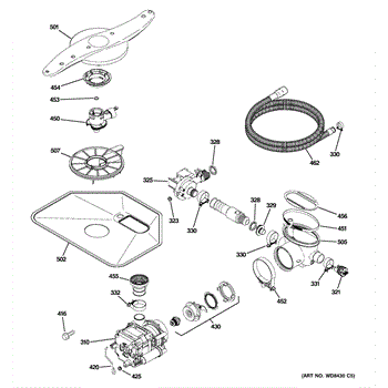 The Dishwasher Sump is an OEM part for GE dishwashers. This part is located at the bottom of the dishwasher and serves as a central hub where water is collected and recirculated during the wash and rinse cycles. The sump houses the dishwasher's pump and filter assembly.