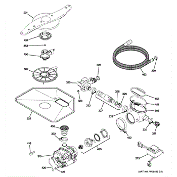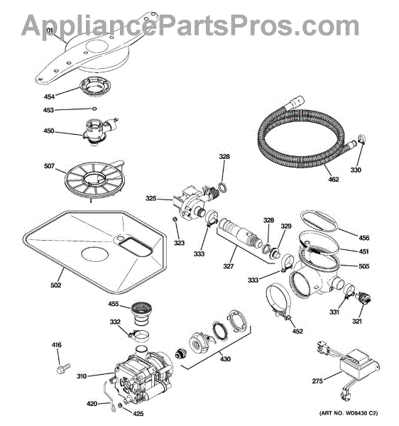 The Pump and Motor Assembly is an OEM replacement part for GE dishwashers. It works to circulate water throughout wash and rinse cycles. The motor spins the integrated pump impeller to draw fresh water into the dishwasher and drain used water. Causes of a bad pump and motor assembly can include mineral buildup on pump parts inhibiting water flow, worn motor windings reducing efficiency, or damage from freezing temperatures. Symptoms of a bad pump and motor assembly include: