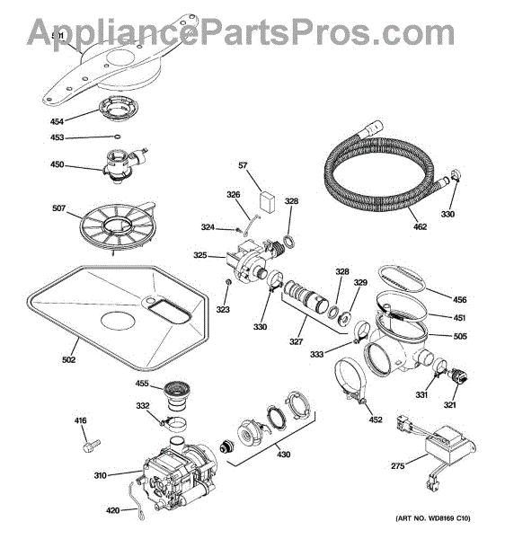 The Pump and Motor Assembly is an OEM replacement part for GE dishwashers. It works to circulate water throughout wash and rinse cycles. The motor spins the integrated pump impeller to draw fresh water into the dishwasher and drain used water. Causes of a bad pump and motor assembly can include mineral buildup on pump parts inhibiting water flow, worn motor windings reducing efficiency, or damage from freezing temperatures. Symptoms of a bad pump and motor assembly include: