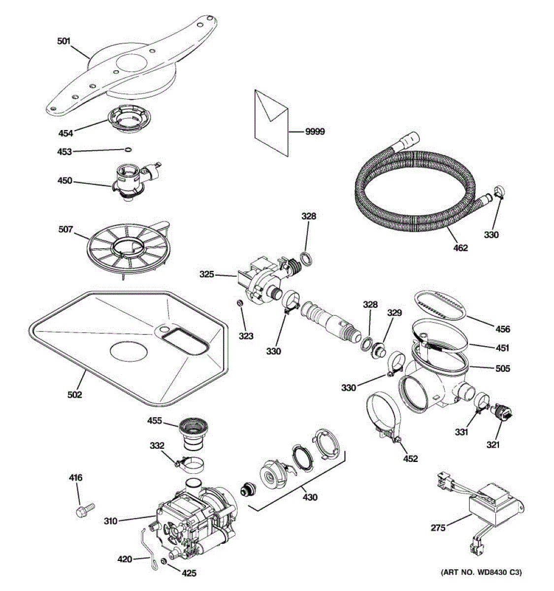 The Dishwasher Sump is an OEM part for GE dishwashers. This part is located at the bottom of the dishwasher and serves as a central hub where water is collected and recirculated during the wash and rinse cycles. The sump houses the dishwasher's pump and filter assembly.