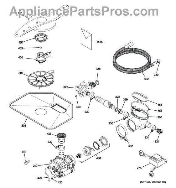 The Pump and Motor Assembly is an OEM replacement part for GE dishwashers. It works to circulate water throughout wash and rinse cycles. The motor spins the integrated pump impeller to draw fresh water into the dishwasher and drain used water. Causes of a bad pump and motor assembly can include mineral buildup on pump parts inhibiting water flow, worn motor windings reducing efficiency, or damage from freezing temperatures. Symptoms of a bad pump and motor assembly include: