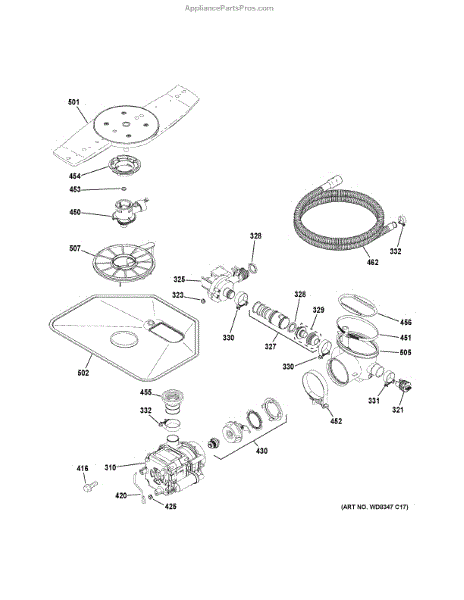 The Pump and Motor Assembly is an OEM replacement part for GE dishwashers. It works to circulate water throughout wash and rinse cycles. The motor spins the integrated pump impeller to draw fresh water into the dishwasher and drain used water. Causes of a bad pump and motor assembly can include mineral buildup on pump parts inhibiting water flow, worn motor windings reducing efficiency, or damage from freezing temperatures. Symptoms of a bad pump and motor assembly include:
