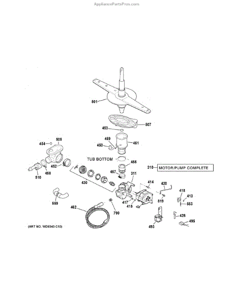 Dishwasher won't drain? This pump housing connects the motor to drain system. Common fix for leaks at drain flap pivot. Video guide available.
