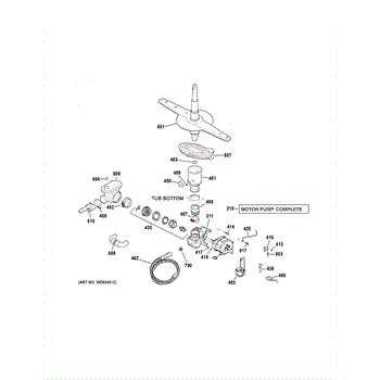 The Lower Spray Arm is an OEM part for GE dishwashers, meticulously crafted to provide a direct replacement for the original component. This part is essential for ensuring that water is evenly distributed throughout the dishwasher during a cycle, reaching all dishes to effectively remove food debris and stains. The lower spray arm rotates and sprays water with precision, making it a critical element in achieving optimal cleaning performance. Causes for these issues often stem from regular use, such as the accumulation of hard water minerals leading to clogs, or physical damage from improper loading of dishes. Ensuring that the Lower Spray Arm is in good condition and free from obstructions is vital for maintaining the dishwasher's efficiency and cleaning effectiveness. Symptoms of a faulty Lower Spray Arm include: