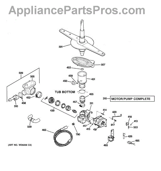 For single drain outlet models only. For dual outlet port models you must order the complete pump and motor WD26X10013.