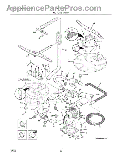 Replacement pump assembly that moves water through the appliance to clear standing water and restore normal draining. Installs as a direct swap to address drainage problems and reduce water-related cycle interruptions. What it does: