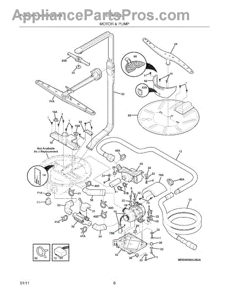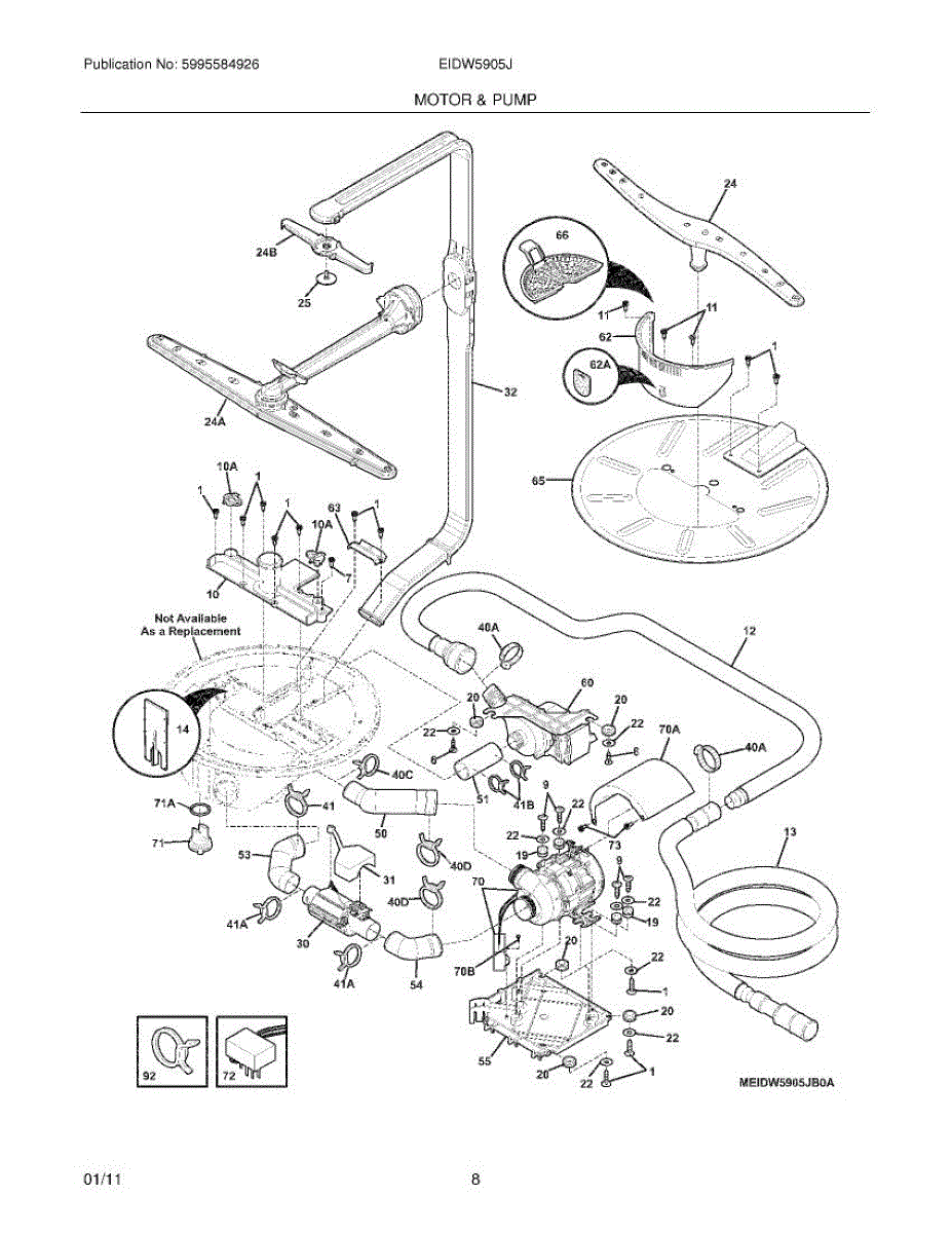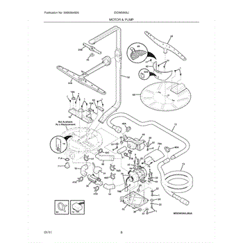 Fix weak spray or grinding noise during wash cycle. This circulation pump assembly recirculates water through spray arms. Moderate DIY repair, 20-30 minutes.