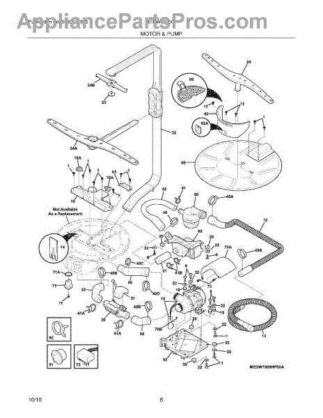 Replacement pump assembly that moves water through the appliance to clear standing water and restore normal draining. Installs as a direct swap to address drainage problems and reduce water-related cycle interruptions. What it does: