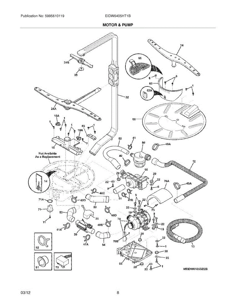 Fix weak spray or grinding noise during wash cycle. This circulation pump assembly recirculates water through spray arms. Moderate DIY repair, 20-30 minutes.