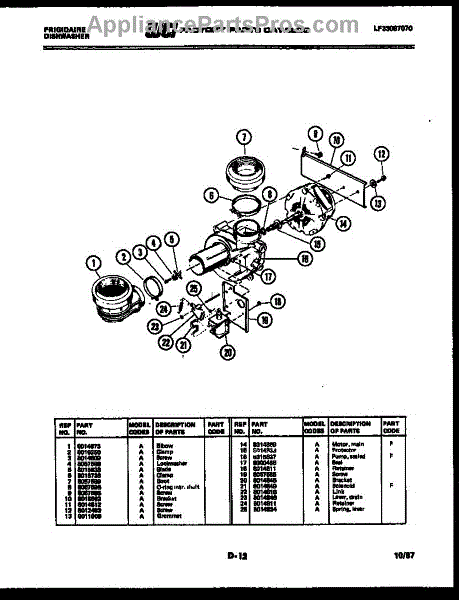 Parts for Frigidaire DW44500FW1: 08 - Motor Pump Parts