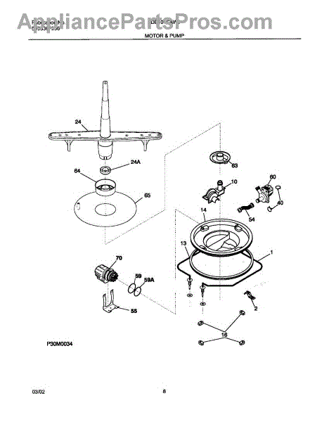This is a circulation pump motor for dishwashers. It controls the main pump of the appliance.The pump is directly responsible for removing extra water from the dishwasher after use. When a dishwasher's circulation pump motor goes bad, the main indicator is usually leaking from the appliance. There will be a noticeable amount of water emerging from the bottom of the machine whenever the cycle is engaged. Unplug the dishwasher from its main power source and water hookup. Remove the dishwasher from its space in the counter. Remove all necessary entry plates to access the interior of the dishwasher. There is a metal bracket holding the current motor in. Unscrew the two screws that secure the bracket and remove this component. Remember which way the motor is oriented before removing it. Unplug the power cable connecting the motor to the dishwasher. Put the two new sealing rings on the new pump motor. Repeat these instructions in reverse to install the new part.This Frigidaire dishwasher circulation pump motor is a genuine OEM replacement part sourced directly from Frigidaire. The pump motor is sold individually. This part is compatible with Frigidaire, Kenmore, Westinghouse, and Gibson appliances.
