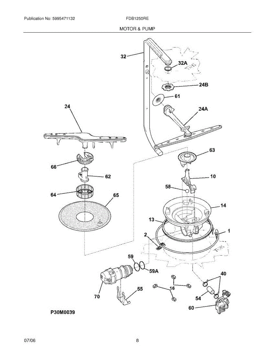 Causes of a bad drain pump assembly can include clogging from food particles and debris, damage to the pump impeller, or electrical failures within the pump motor. Over time, regular use can lead to wear and tear that affects the pump's performance.