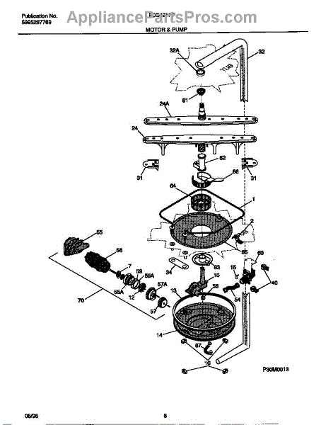 This sump gasket seals the connection between the dishwasher tub and the sump/pump assembly. Replacing a flattened or cracked gasket restores a watertight barrier to help stop leaks from the base and protect floors and cabinetry.