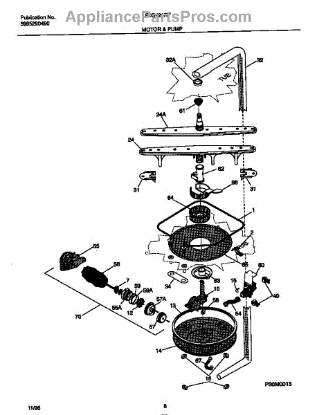 This sump gasket seals the connection between the dishwasher tub and the sump/pump assembly. Replacing a flattened or cracked gasket restores a watertight barrier to help stop leaks from the base and protect floors and cabinetry.