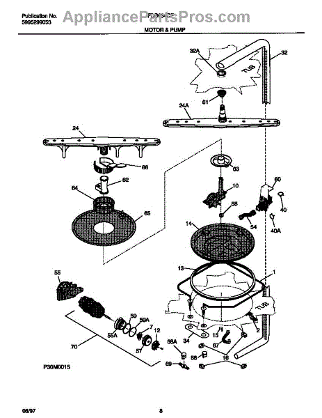 This sump gasket seals the connection between the dishwasher tub and the sump/pump assembly. Replacing a flattened or cracked gasket restores a watertight barrier to help stop leaks from the base and protect floors and cabinetry.