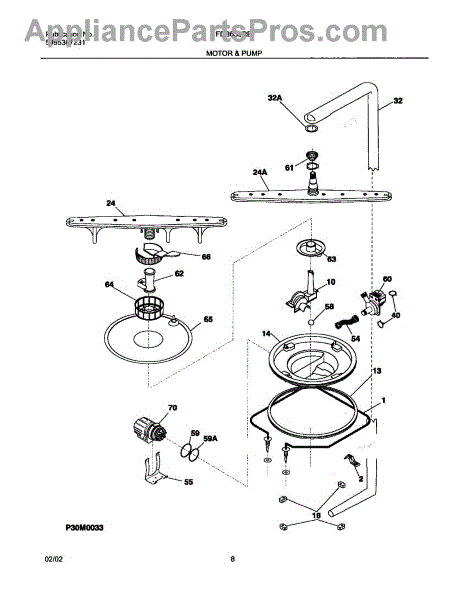This is a circulation pump motor for dishwashers. It controls the main pump of the appliance.The pump is directly responsible for removing extra water from the dishwasher after use. When a dishwasher's circulation pump motor goes bad, the main indicator is usually leaking from the appliance. There will be a noticeable amount of water emerging from the bottom of the machine whenever the cycle is engaged. Unplug the dishwasher from its main power source and water hookup. Remove the dishwasher from its space in the counter. Remove all necessary entry plates to access the interior of the dishwasher. There is a metal bracket holding the current motor in. Unscrew the two screws that secure the bracket and remove this component. Remember which way the motor is oriented before removing it. Unplug the power cable connecting the motor to the dishwasher. Put the two new sealing rings on the new pump motor. Repeat these instructions in reverse to install the new part.This Frigidaire dishwasher circulation pump motor is a genuine OEM replacement part sourced directly from Frigidaire. The pump motor is sold individually. This part is compatible with Frigidaire, Kenmore, Westinghouse, and Gibson appliances.