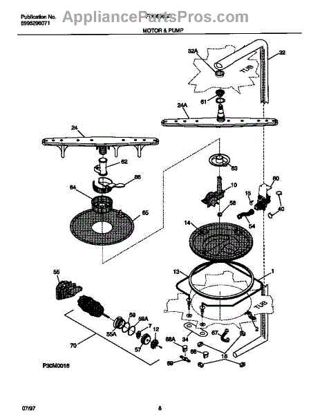 This sump gasket seals the connection between the dishwasher tub and the sump/pump assembly. Replacing a flattened or cracked gasket restores a watertight barrier to help stop leaks from the base and protect floors and cabinetry.