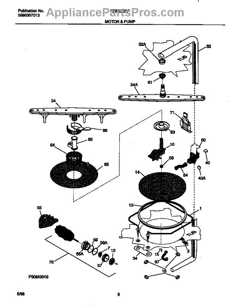 This sump gasket seals the connection between the dishwasher tub and the sump/pump assembly. Replacing a flattened or cracked gasket restores a watertight barrier to help stop leaks from the base and protect floors and cabinetry.