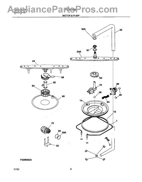 This is a circulation pump motor for dishwashers. It controls the main pump of the appliance.The pump is directly responsible for removing extra water from the dishwasher after use. When a dishwasher's circulation pump motor goes bad, the main indicator is usually leaking from the appliance. There will be a noticeable amount of water emerging from the bottom of the machine whenever the cycle is engaged. Unplug the dishwasher from its main power source and water hookup. Remove the dishwasher from its space in the counter. Remove all necessary entry plates to access the interior of the dishwasher. There is a metal bracket holding the current motor in. Unscrew the two screws that secure the bracket and remove this component. Remember which way the motor is oriented before removing it. Unplug the power cable connecting the motor to the dishwasher. Put the two new sealing rings on the new pump motor. Repeat these instructions in reverse to install the new part.This Frigidaire dishwasher circulation pump motor is a genuine OEM replacement part sourced directly from Frigidaire. The pump motor is sold individually. This part is compatible with Frigidaire, Kenmore, Westinghouse, and Gibson appliances.
