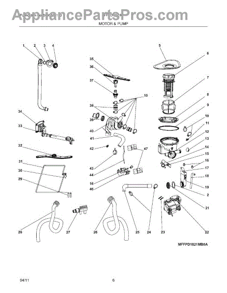 This replacement OEM part is a circulation pump motor assembly for dishwashers. The circulation pump motor distributes water to the spray arm to allow the dishwasher to properly do its job. Over time, the circulation pump motor can become overworked to the point of becoming inoperable. Luckily, replacing the pump motor is not as difficult a job as it might seem. To begin the repair, turn off the power supply and shut off the water supply valve. Remove the screws that secure the lower access panel. Disconnect the water supply line from the inlet valve. Then proceed to remove the mounting screws from the junction box cover. Take note of the wires' orientation. Remove the screws that hold the bracket. Disconnect the drain hose from the sink or garbage disposal. Open the dishwasher door and remove the mounting screws. Pull the dishwasher away from the cabinet and unsnap the covers from the hinge ropes. Disconnect the ropes. Remove the screws securing the upper door panel. Carefully tilt the dishwasher back and detach the fill hose from its retaining clip disconnecting the hose from the sump. Uninstall the circulation pump and align the pump with the seal and sump. Tighten the clamp and transfer the wires from the old pump to the new one. Proceed to reinstall the panels that were uninstalled.This genuine replacement part is sold individually and is compatible with Frigidaire, Electrolux, Gibson, Kelvinator, and Westinghouse brand dishwashers.