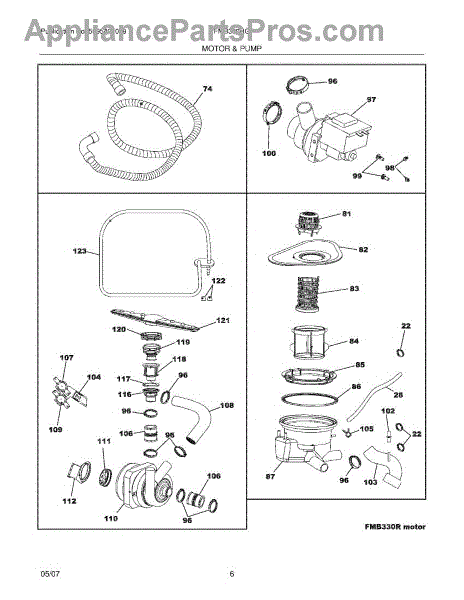 Fix a dishwasher that won't drain or has weak spray with this pump and motor assembly. Moderate repair requiring basic tools and 30-45 minutes.