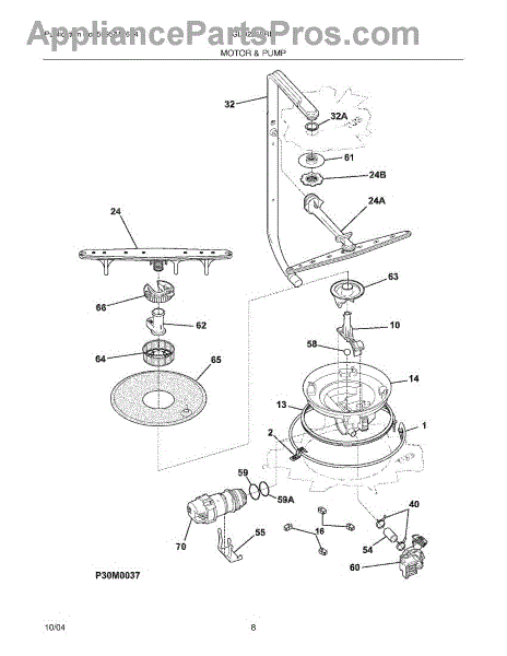 This is a circulation pump motor for dishwashers. It controls the main pump of the appliance.The pump is directly responsible for removing extra water from the dishwasher after use. When a dishwasher's circulation pump motor goes bad, the main indicator is usually leaking from the appliance. There will be a noticeable amount of water emerging from the bottom of the machine whenever the cycle is engaged. Unplug the dishwasher from its main power source and water hookup. Remove the dishwasher from its space in the counter. Remove all necessary entry plates to access the interior of the dishwasher. There is a metal bracket holding the current motor in. Unscrew the two screws that secure the bracket and remove this component. Remember which way the motor is oriented before removing it. Unplug the power cable connecting the motor to the dishwasher. Put the two new sealing rings on the new pump motor. Repeat these instructions in reverse to install the new part.This Frigidaire dishwasher circulation pump motor is a genuine OEM replacement part sourced directly from Frigidaire. The pump motor is sold individually. This part is compatible with Frigidaire, Kenmore, Westinghouse, and Gibson appliances.