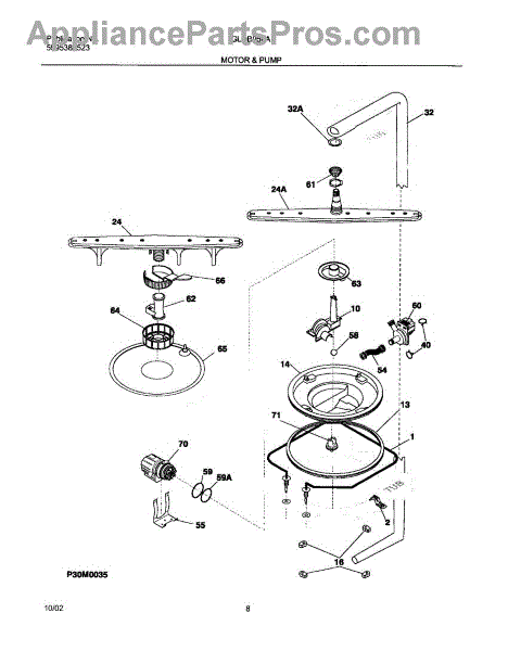 This is a circulation pump motor for dishwashers. It controls the main pump of the appliance.The pump is directly responsible for removing extra water from the dishwasher after use. When a dishwasher's circulation pump motor goes bad, the main indicator is usually leaking from the appliance. There will be a noticeable amount of water emerging from the bottom of the machine whenever the cycle is engaged. Unplug the dishwasher from its main power source and water hookup. Remove the dishwasher from its space in the counter. Remove all necessary entry plates to access the interior of the dishwasher. There is a metal bracket holding the current motor in. Unscrew the two screws that secure the bracket and remove this component. Remember which way the motor is oriented before removing it. Unplug the power cable connecting the motor to the dishwasher. Put the two new sealing rings on the new pump motor. Repeat these instructions in reverse to install the new part.This Frigidaire dishwasher circulation pump motor is a genuine OEM replacement part sourced directly from Frigidaire. The pump motor is sold individually. This part is compatible with Frigidaire, Kenmore, Westinghouse, and Gibson appliances.