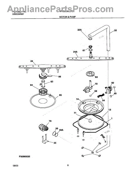 This is a circulation pump motor for dishwashers. It controls the main pump of the appliance.The pump is directly responsible for removing extra water from the dishwasher after use. When a dishwasher's circulation pump motor goes bad, the main indicator is usually leaking from the appliance. There will be a noticeable amount of water emerging from the bottom of the machine whenever the cycle is engaged. Unplug the dishwasher from its main power source and water hookup. Remove the dishwasher from its space in the counter. Remove all necessary entry plates to access the interior of the dishwasher. There is a metal bracket holding the current motor in. Unscrew the two screws that secure the bracket and remove this component. Remember which way the motor is oriented before removing it. Unplug the power cable connecting the motor to the dishwasher. Put the two new sealing rings on the new pump motor. Repeat these instructions in reverse to install the new part.This Frigidaire dishwasher circulation pump motor is a genuine OEM replacement part sourced directly from Frigidaire. The pump motor is sold individually. This part is compatible with Frigidaire, Kenmore, Westinghouse, and Gibson appliances.
