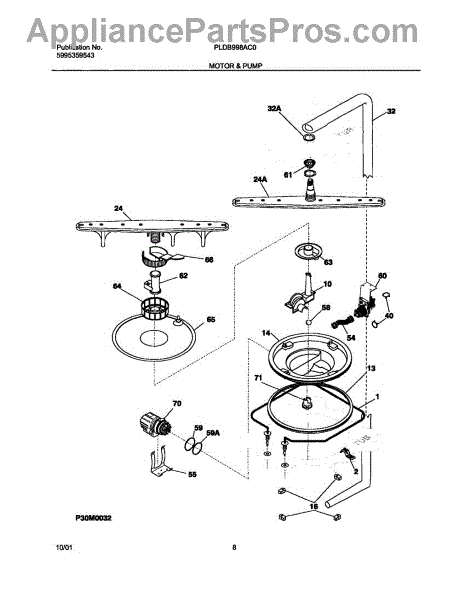 This is a circulation pump motor for dishwashers. It controls the main pump of the appliance.The pump is directly responsible for removing extra water from the dishwasher after use. When a dishwasher's circulation pump motor goes bad, the main indicator is usually leaking from the appliance. There will be a noticeable amount of water emerging from the bottom of the machine whenever the cycle is engaged. Unplug the dishwasher from its main power source and water hookup. Remove the dishwasher from its space in the counter. Remove all necessary entry plates to access the interior of the dishwasher. There is a metal bracket holding the current motor in. Unscrew the two screws that secure the bracket and remove this component. Remember which way the motor is oriented before removing it. Unplug the power cable connecting the motor to the dishwasher. Put the two new sealing rings on the new pump motor. Repeat these instructions in reverse to install the new part.This Frigidaire dishwasher circulation pump motor is a genuine OEM replacement part sourced directly from Frigidaire. The pump motor is sold individually. This part is compatible with Frigidaire, Kenmore, Westinghouse, and Gibson appliances.