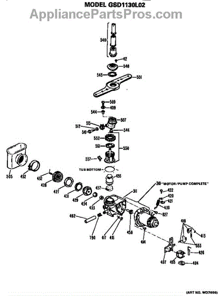Parts for Ge GSD1130L02: Motor / Pump Parts