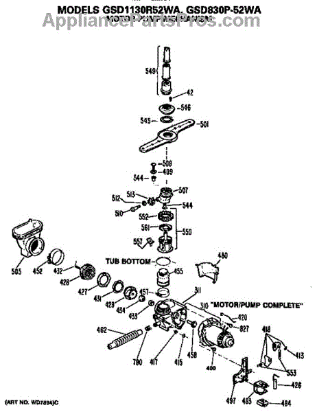 Parts for Ge GSD1130R52WA: Motor / Pump Parts