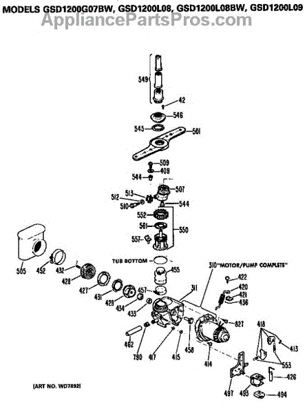 Parts for Ge GSD1200L08: Motor / Pump Parts