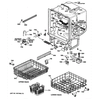 The Upper Rack is an OEM replacement part for GE dishwashers. It provides movable shelf space along the top of the dishwasher interior for washing plates, bowls, and other dishes. The shelves feature an adjustable design that accommodates various sizes and configurations of dishware. Causes of failure include normal wear and tear, accidental impacts that damage shelves or cleaning chemicals stripping away protective coatings. Symptoms of a bad upper rack can include: