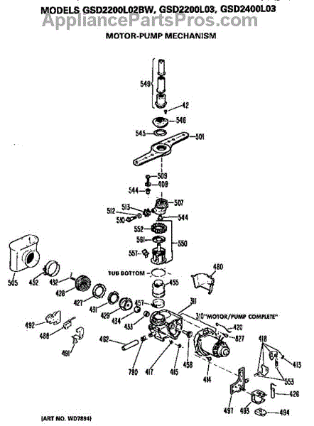 Parts for Ge GSD2200L03: Motor / Pump Parts