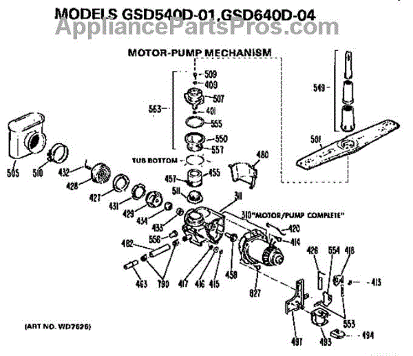 Parts for Ge GSD540D-01: Motor And Pump Parts